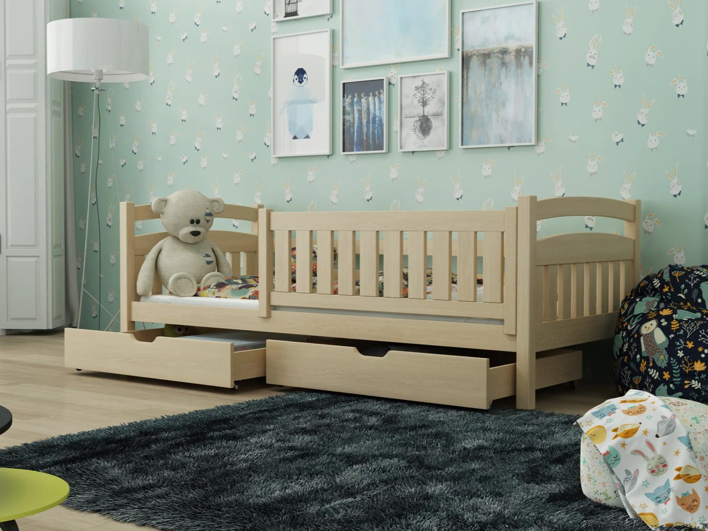 • The slatted bed base is included - made of pine wood