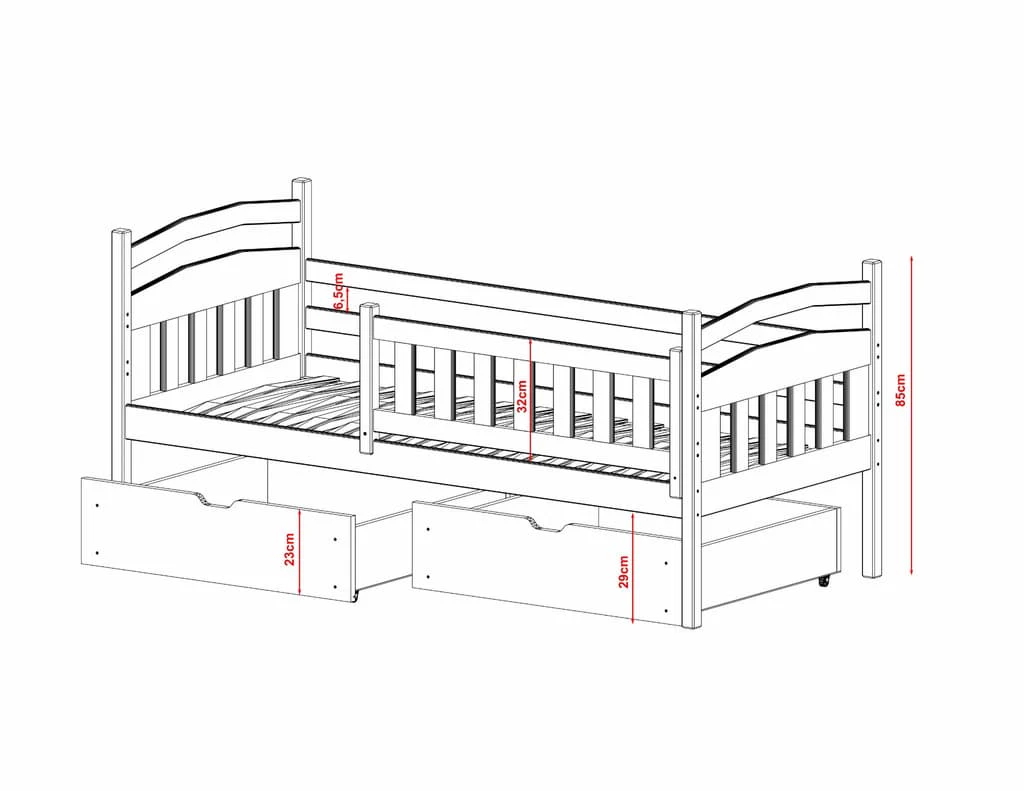 The Terry wooden bed is made from solid pinewood with removable safety guards. It has two storage drawers under the base for closet organization as well as a cot-like structure to accommodate a child from their infant years till their teenage. This is also perfect for storing away books and small items in addition to clothing.