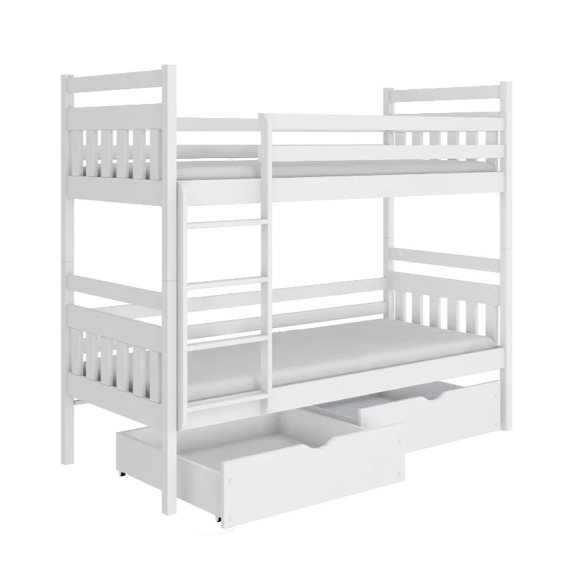 The Adas bunk bed is an elegant and gracefully designed furniture for the bedroom. It has two floors with a practical pair of storage drawers for books, toys and other personal belongings of children. The ladder is universal, and hence can be used on either side of the bed. This bed is available in four different colours : white, graphite or pine. Mattress can be bought separately.