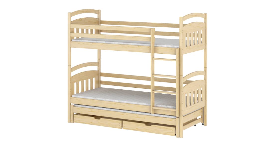 Alan is a premium quality, durable bunk bed. It is equipped with a universal ladder and storage drawers that will strengthen your child's independent ability and eliminate time-consuming tidying. To accommodate more siblings in a single room or arrange sleeping space for guests, this bed also comes with a trundle.