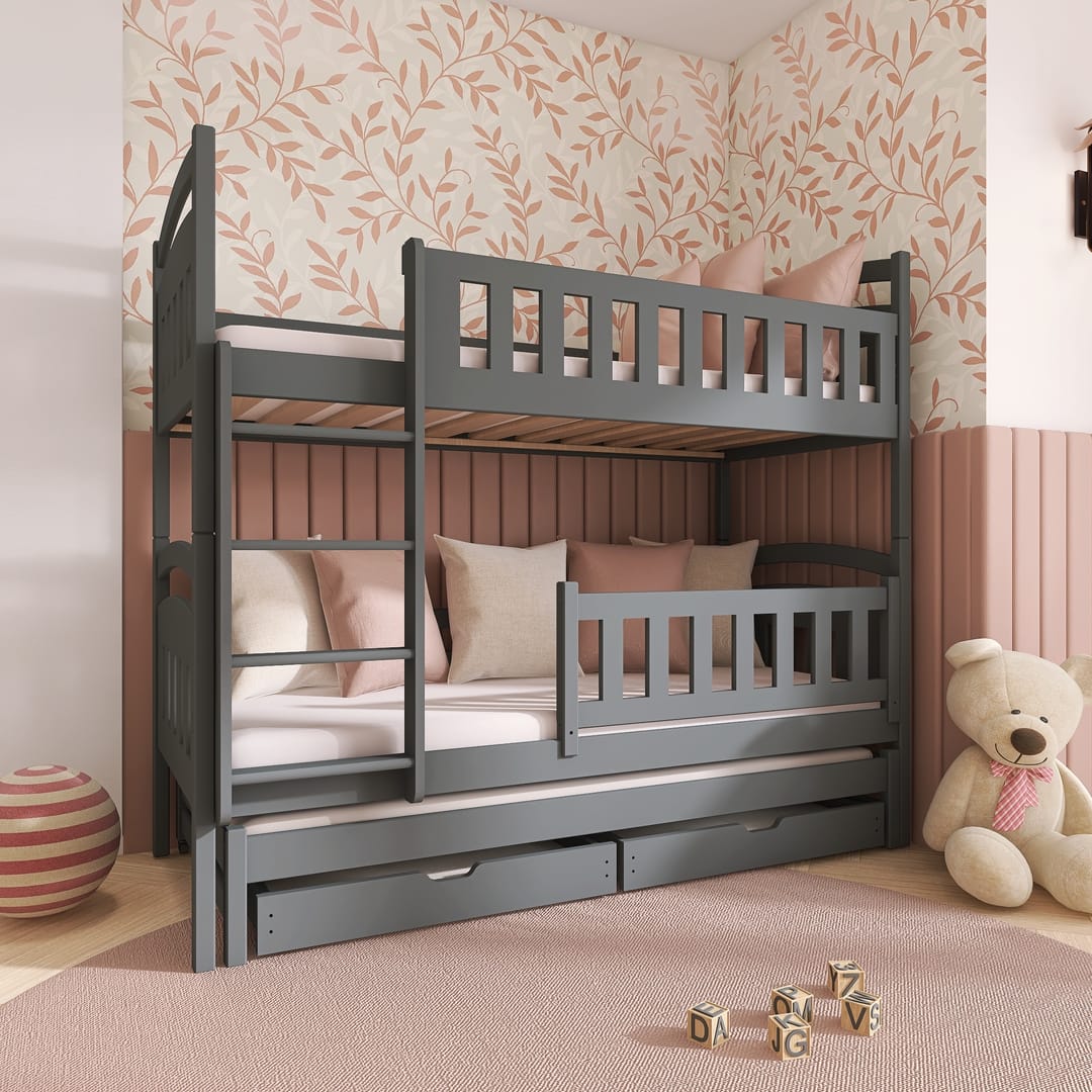 Wooden Bunk Bed Blanka with Trundle and Storage Graphite