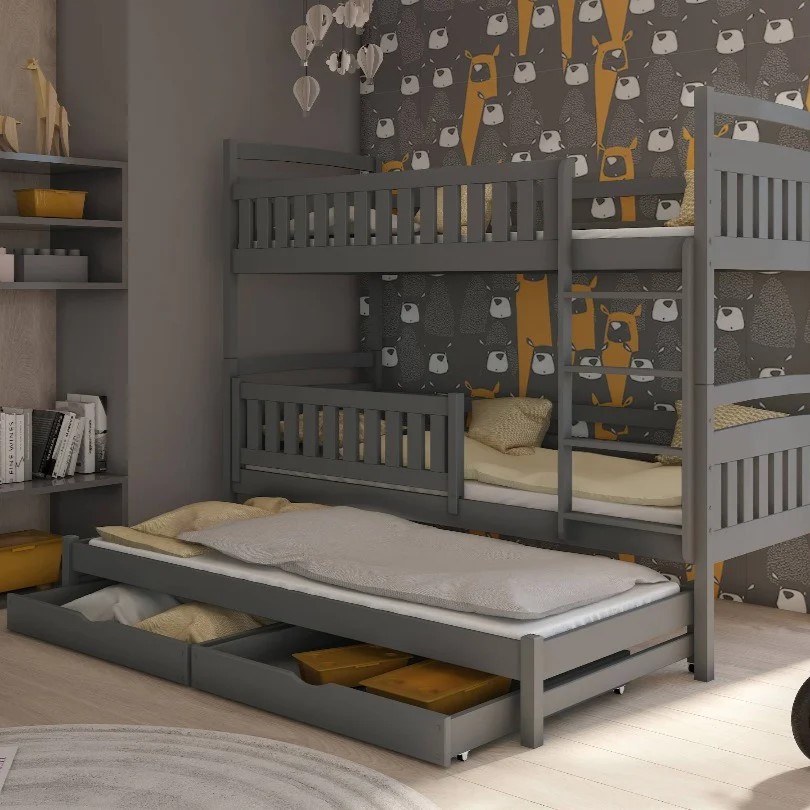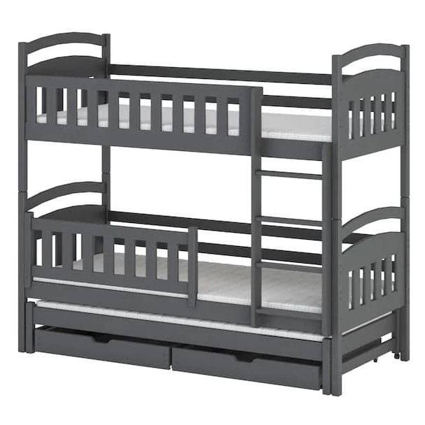 Wooden Bunk Bed Blanka with Trundle and Storage Graphite