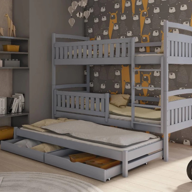 Wooden Bunk Bed Blanka with Trundle and Storage Grey