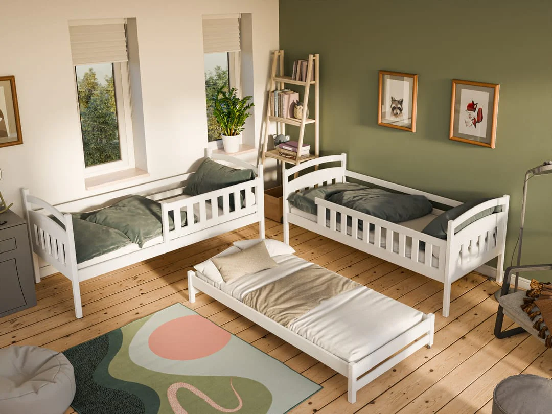 A modern bunk bed with convenient drawers and a practical trundle for extra sleeping space. It is painted with a chemical-free, water-based paint to protect the health of your child. The Blanka is affordable, stylish with solid pinewood construction which is extremely resistant to wear and tear.