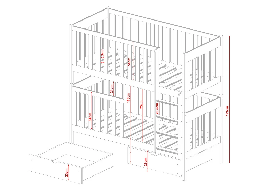 The David bunk bed offers space-saving design, durability, safety and comfort for the whole family. With two storage drawers and a universal ladder, both children and grownups alike will benefit from more free space. The safety of the David is matched only by its comfort and ease of use.