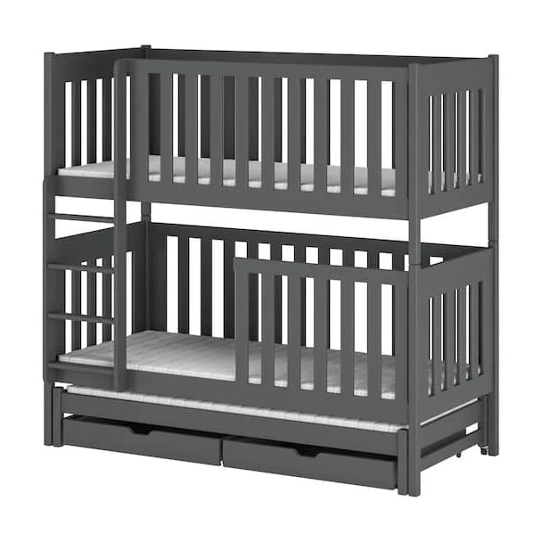 Wooden Bunk Bed Emily with Trundle and Storage Graphite