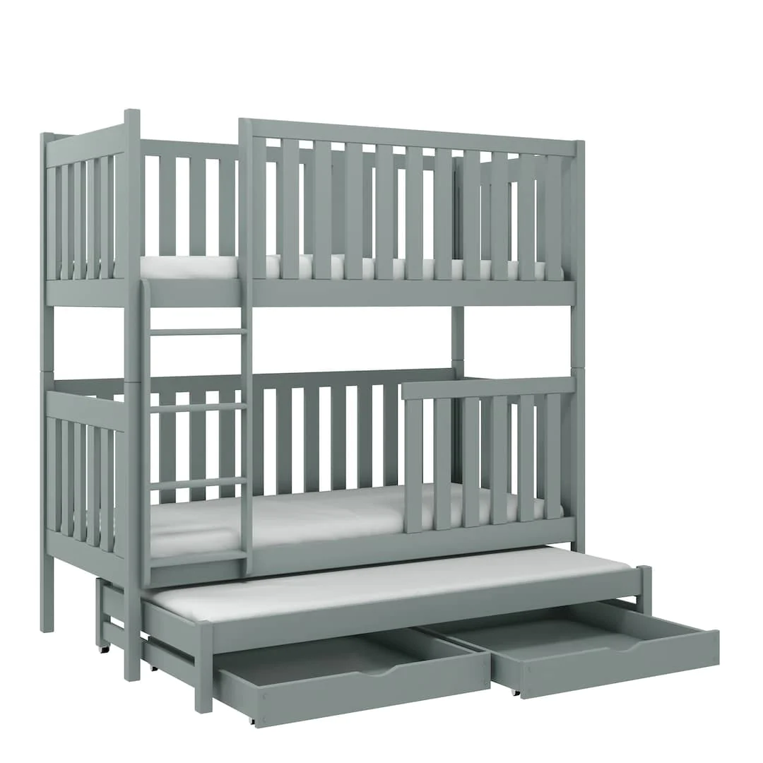 Wooden Bunk Bed Emily with Trundle and Storage Grey Matt