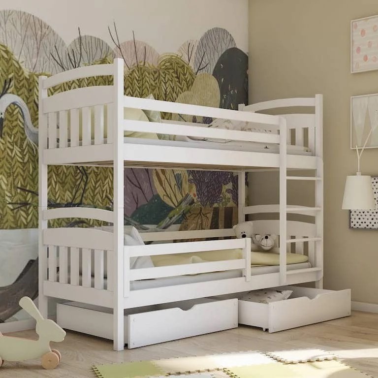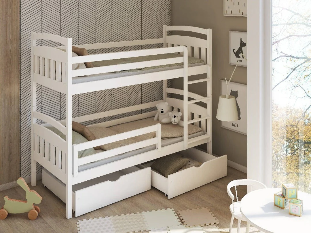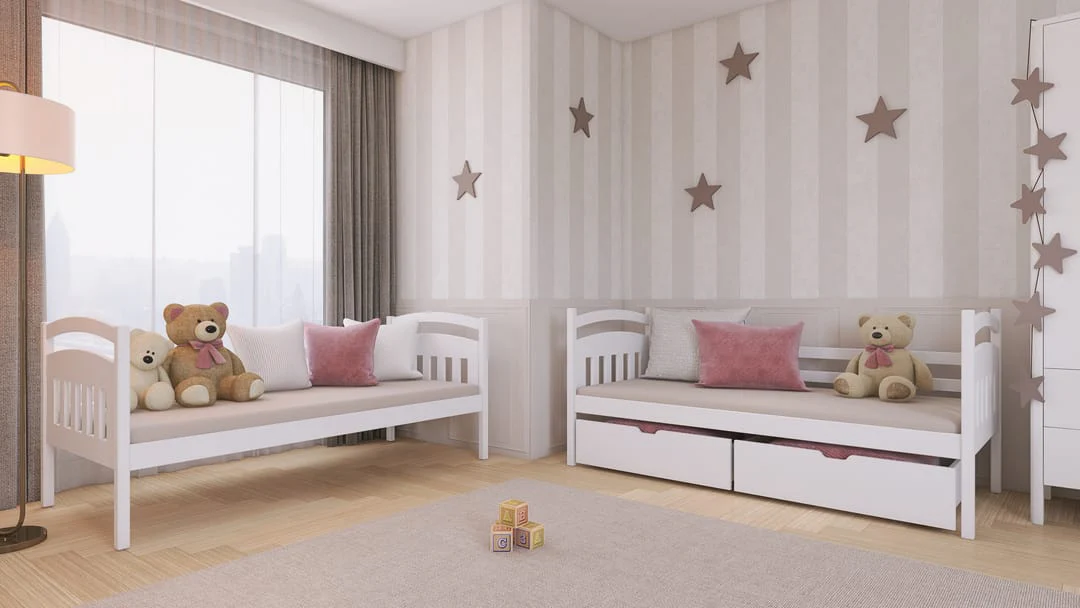The Gabi bunk bed features a universal ladder that can fit on either side to support even the tallest of kids. The ladder also adds privacy if your child wants to escape to the top bunk. When it's time for a good night's sleep, Gabi's unique no-wobble corner posts ensure that your bed is sturdy and safe. In addition, two under-bed drawers provide storage to keep clutter off the floor.