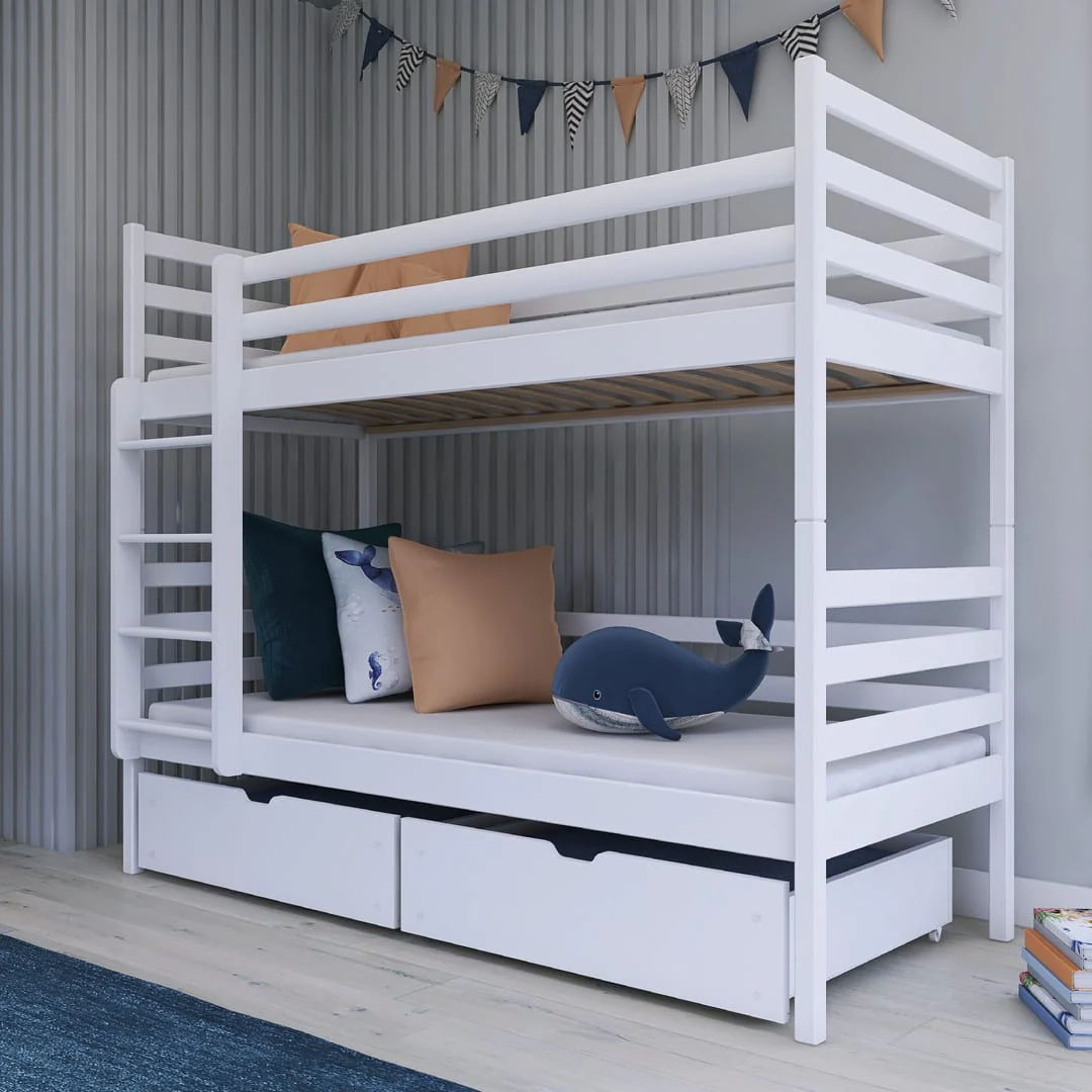 Wooden Bunk Bed Nemo with Storage White Matt