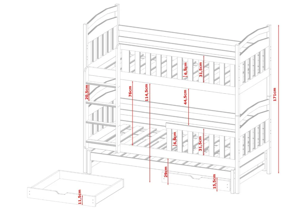 An amazing bunk bed, designed for your kids with a captivating look. It's available in multiple colors and guaranteed the utmost solidity and durability.