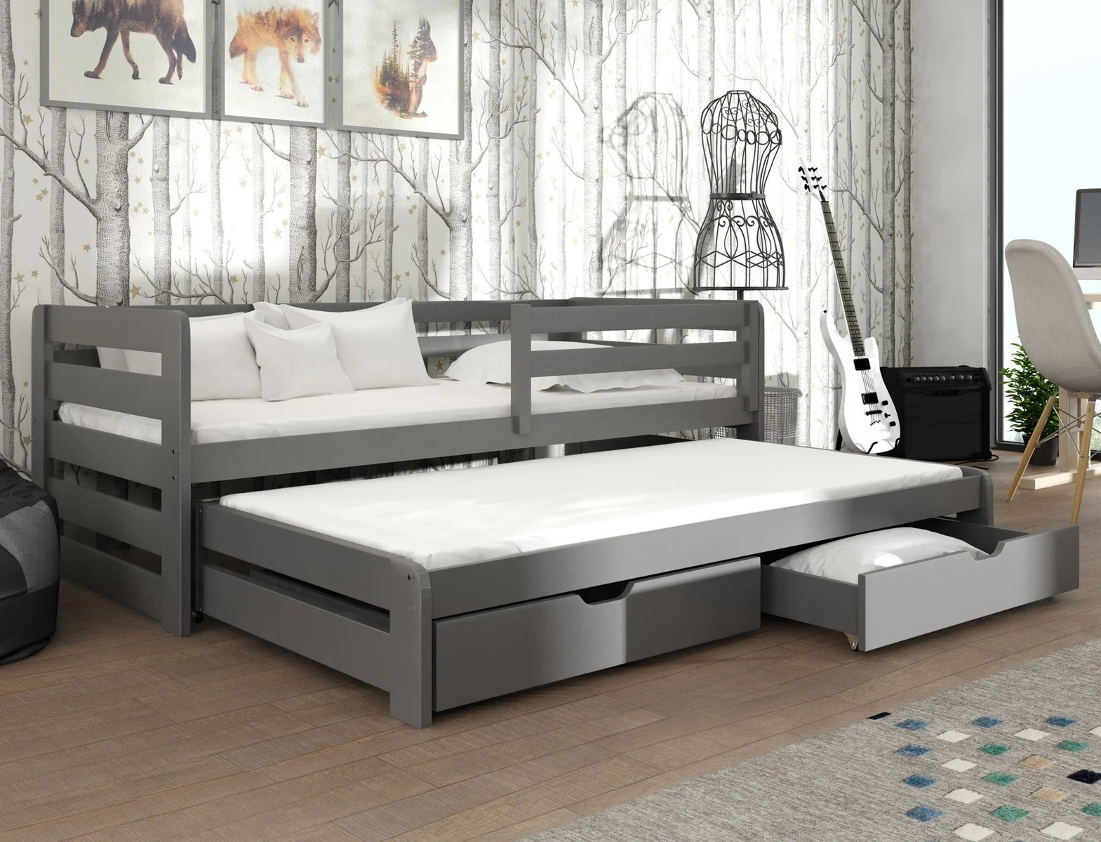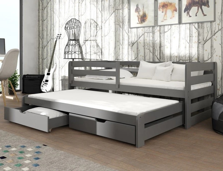 Details about Wooden Double Bed Senso with Trundle and Storage Graphite