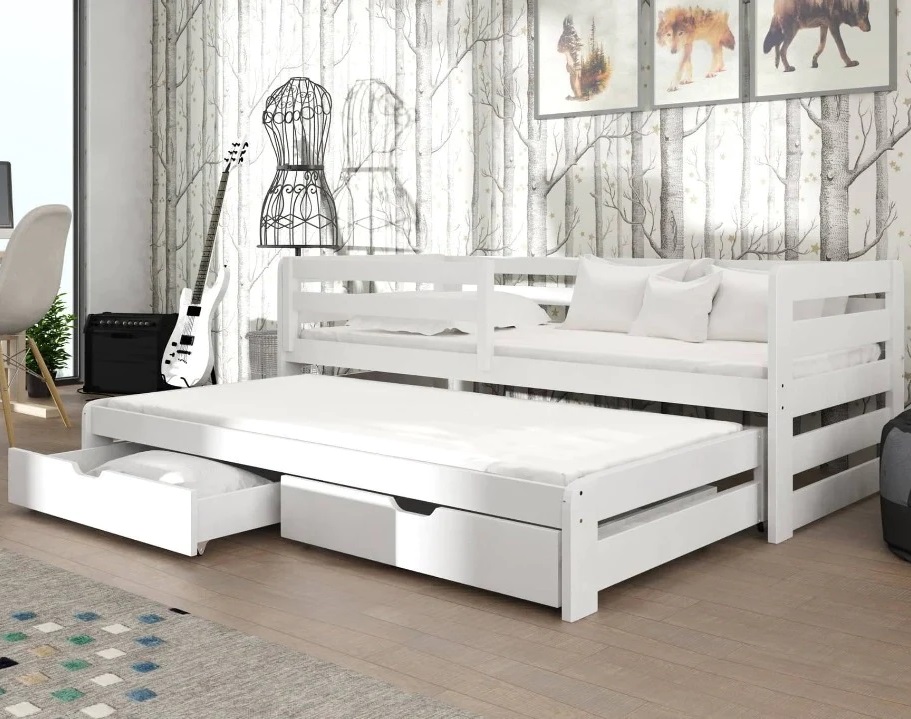 Details about Wooden Double Bed Senso with Trundle and Storage White Matt