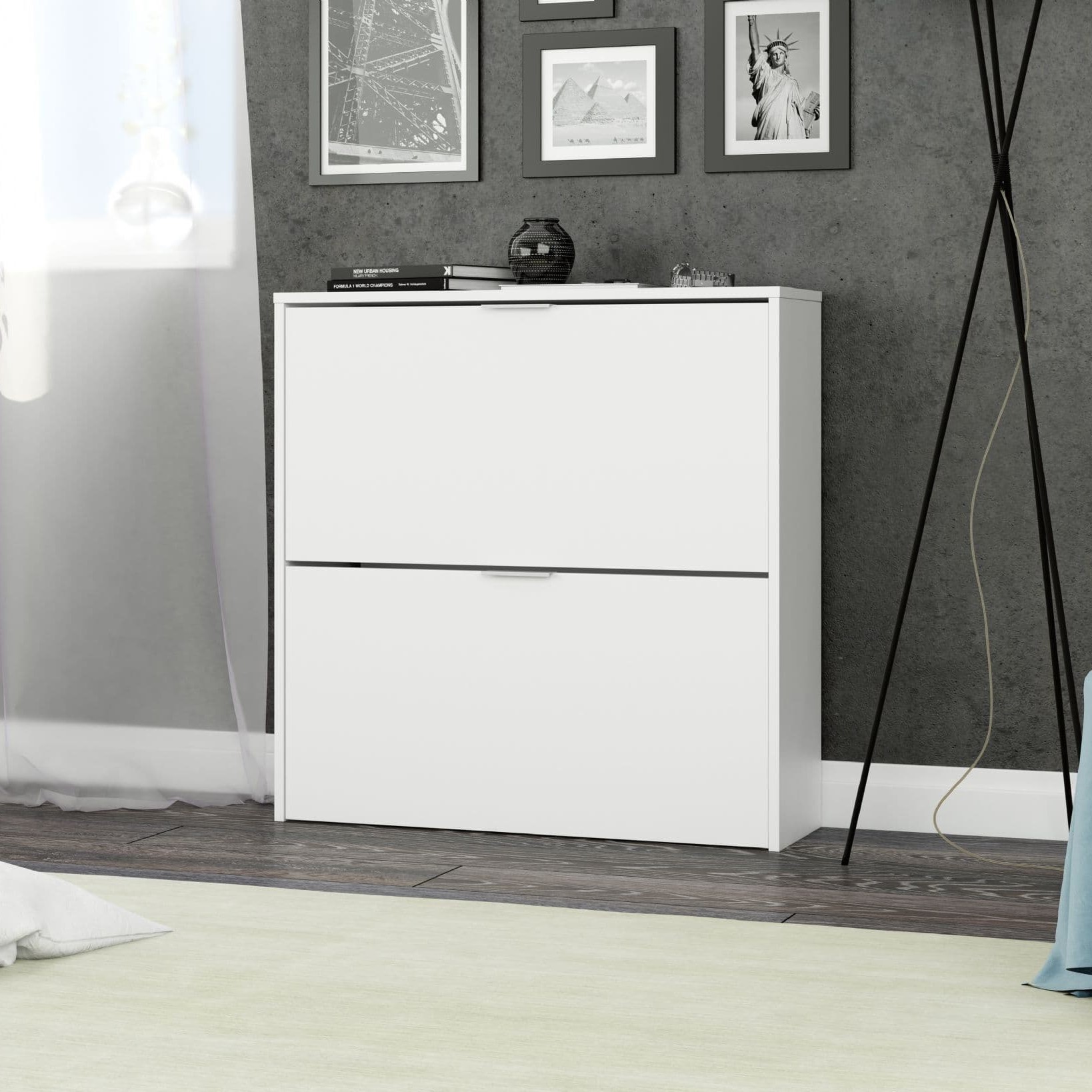 Add smart storage and clean style to your hallway or bedroom with the York Matt White 2 Drawer Shoe Cabinet. This compact unit is designed to keep your footwear organized while blending seamlessly into modern interiors.