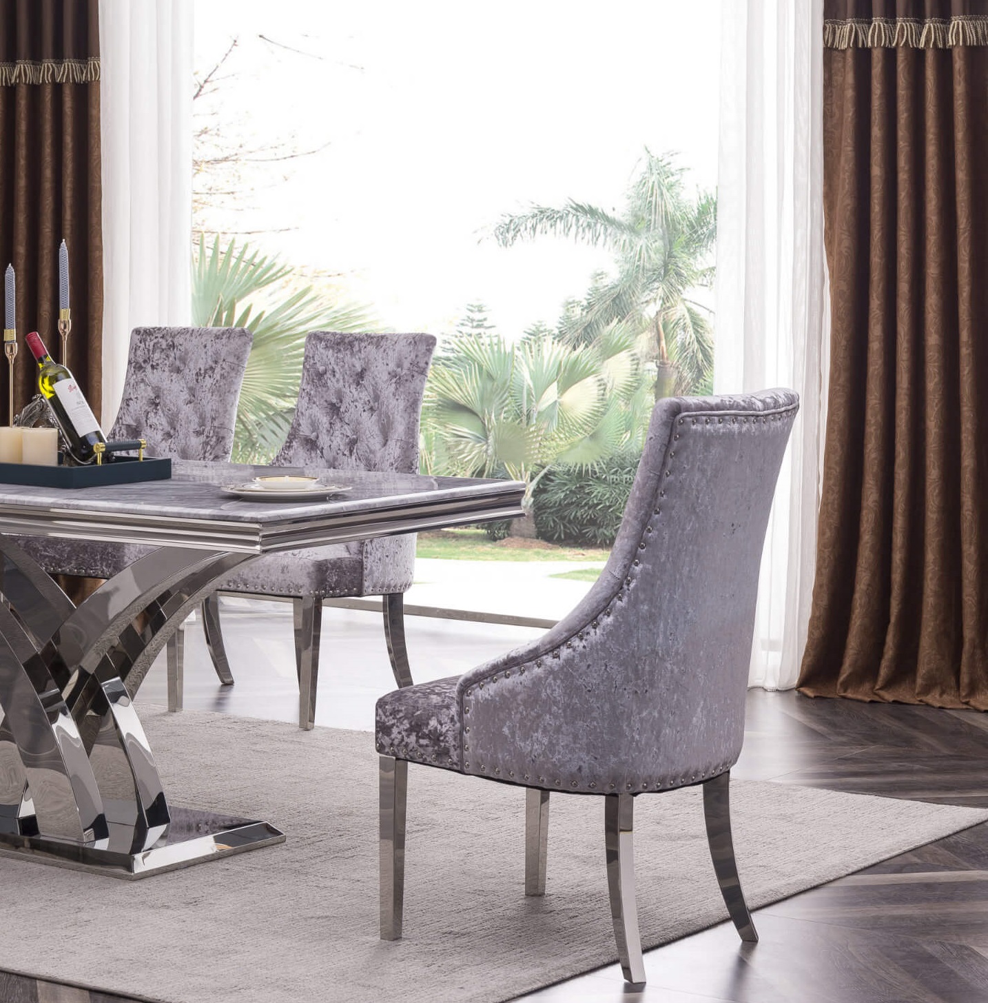 Zenith Dining Chair: Stylish & Comfortable (Velvet & Stainless Steel)